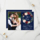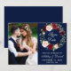 Watercolor Blomsterkrans Burgunder Blå Bröllop Spara Datum-kort - Blå Baksida