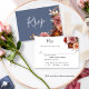 Elegant dammblått OSA kort med uppgifter om rosa, elfenben, persika, ro guld burgundy och dammig ro vattenfärgad blommigt både framifrån och bakifrån. Elegantens dammiga blå bakgrund på framsidan. Möjlighet att lägga till eller ta bort måltider. En del av vår "Heaven i Ro blommigt och Dusty Blue" bröllop och evenemangsinsamling.
