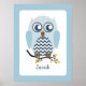 Blå + Chevron Uggle Personlig Barnkammarskunst Poster