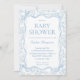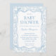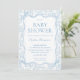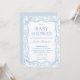 Fira den perfekta vintage chic baby shower. Designen har ett mjukt blått blomster motiv som inger en lugn och välkomnande atmosfär. Den centrala delen av inbjudan är en graciös header i kalligrafi stil. De mjuka, vintage-inspirerade blå blommorna kompletterar den övergripande eleganta estetiken, vilket gör denna inbjudan till ett perfekt val för en chic baby shower firande.
