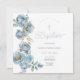 Vintage Dusty Blue Blommigt Christening-inbjudan