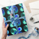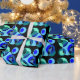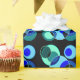 Färgfull och geometrisk abstrakt mönster, olika skuggor av grönt och blå skärande cirklar på svart bakgrund