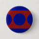 Det här fetstilta geometriska mönster har en blå cirkel i mitten och två blå halvcirklar på kanten av en röd bakgrund.