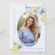 Fira din examen med denna fräscha och moderna inbjudan i blå citronfärger. Med livfulla akvarellcitroner i kombination med mjuka blå toner skapar denna design ett ljust och stilrent uttryck som är perfekt för en sommarfirad examen.