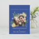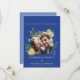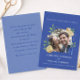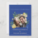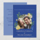 Ge din fest en frisk, romantisk charm med denna blå citron trädgård bröllopsinbjudan. Med livfulla gula citroner, frodig grönska och en rik blå bakgrund kombinerar denna design Medelhavets värme med elegant botanisk stil. Ett cirkulärt foto ger en personlig touch, vilket gör det perfekt för par som vill ha ett modernt men tidlöst tillkännagivande. Anpassa namnen, datumet och lokalens detaljer för att skapa en vacker koordinerad del för din brölloppssvit.