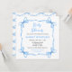 Denna söta och fantasifulla inbjudan till babyfirande har en ram med sött blått band. Texten kombinerar handskriven skrift och sans serif-teckensnitt för en stilren och modern look.