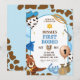 Blå Cowboy Pojke Första Rodeo Födelsedagsinbjudan, Vilda Västern 1:a Födelsedagsinbjudan, Redigerbar Ko Mönster Västerländsk Födelsedagsfest