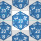 Blå 20-sidiga dice över hela mönster. Underbar för skapar disksäckar, masker, ärr för en spelare.