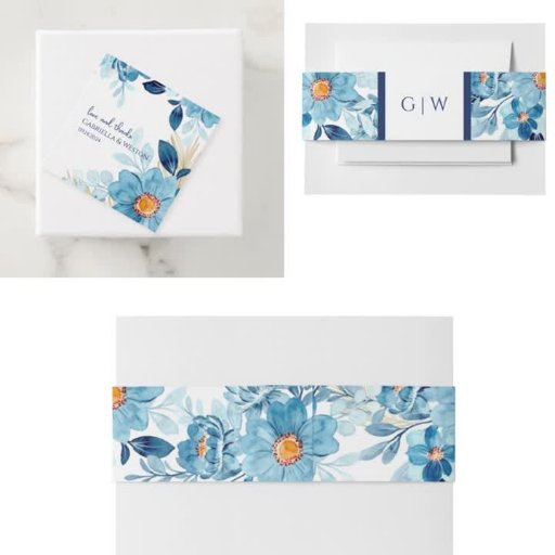 Anpassa det här snyggt designade tackkortet för blått blommigt bröllop. Anpassa med text och bild.