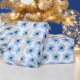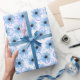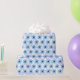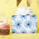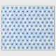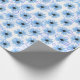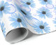 Blå daisy mönster med genomskinliga bubblor på vit bakgrund.