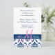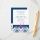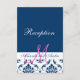 Blå Damask-monogram bröllopsmottagning Tilläggskort