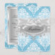 Blå dopinbjudan. Damast & snygg diamantslinga. Anpassa med dina egna detaljer. Observera att alla platta bilder! de har inte riktig spets, slinga eller juveler!