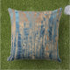 Blå dämpad orange gul strimmig björk kudde