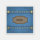 Blå denim-jeans med läder-namn-etikett pappersservett
