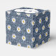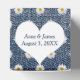 Vitt hjärta med nylyft namn på blå jean denim och daisy mönster.