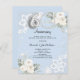 För en elegant och romantisk 60-års bröllopsdag. En ljusblå bakgrund dekorerad med vita blommor, rosor, falska diamanter och vit spets. Personifiera och lägg till ditt foto, namn och detaljer.