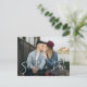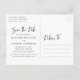 Trendig, stilren spara datumet vykort som visar ditt favoritförlovningsfoto med "Spara datumet" i en ljusblå, handskriven stil. Anpassa framsidan av vykortet genom att lägga till era namn, bröllopsdatum och plats. Baksidan av det moderna spara datumet-vykortet innehåller er returadress, namn, bröllopsdatum och plats, bröllopswebbplats, etc.