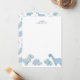 Sött barnbrevpapper notiskort med handritad illustration av blå pastelldinosaurier.