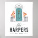Personligens framskjutna utskrift gör en chic och en unik biet av dekoration för nya husägare, där din familj namn och år visas under en skisserad illustration av en akvafolt som är inramad av tegelstenar. Avsluta designen med ditt husnummer tryckt på dörrens lösensumma.