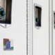 En bild av en vattenfärgsmålning av en blå dörr i ett grekiskt byhem som målats av Georgia Pistolis.