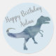 Blå dosinosaur Födelsedagsfest Stickers Runt Klistermärke
