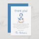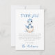 Skicka en ljudupptagning med det här blåa dinosauriebabyduschen tack vare ditt kort, med en charmerande vattenfärgsillustration av en baby-dino. Perfekt för en dusch i pojke erbjuder detta kort ett hjärtligt sätt att tacka gästerna för deras kärlek, gåvor och stöd under denna speciella tid. Att samordna med en dinosaurietemeddrad dusch är en tankfull avslutande beröring.