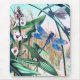 Vintage illustration av en blå drakfluga i en damm med blommor, växter och andra insektra.