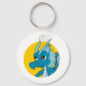 Nyckelkedja med illustration av huvudet på en söt liten blå drake i gultens cirkel, söt fantasi/sagor design för barn av Maxi Harmony.