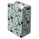 Denna Blue Scuba Diver och Coral Illustration Medium Gift Bag har handritade bilder av dykare för skelettdykare som simmar under havet bland röda koraller, allt mot blå bakgrund.