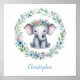Blå elefant med Blommigt andedräkt Poster
