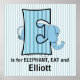 Blå Elefant Monogram E Babyrum Poster