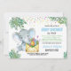 All text kan redigeras. Elegant boylbabydusch i stil. Tema: Elefanten med kuvert Tillfälle: Babydusch per post, virtuell babydusch, avstånd babydusch Stil: söt, elegant boho, bojsk Färg: baby blue, grönt, grått / grått, gult, vit grafik: vattenfärgen baby elefant, grönt löv, kuvert och blommor.