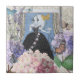 Blå elegant kvinna Blommig fin klänning Kakelplatta