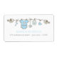 Elegant BABY SHOWER-etikett med baby blue kläder. Finns även i rosa. Klicka på knappen Anpassa om du vill ersätta informationen på etiketten med din information.