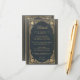 Denna blå, eleganta bröllopsdetaljkort med vintage-känsla har en förgylld ram med barockdekorationer på en mörkblå bakgrund. Titeln Detaljer är skriven med en elegant kalligrafisk skrift. All text har en gyllene färg liknande ramens förgyllda dekorationer. Du kan inkludera detaljer om mottagningen, boendet, anvisningarna, bröllopswebbsidan med mera. Om du vill ha olika bifogade kort för Mottagning, Boende, Anvisningar osv. kan du ändra titeln i enlighet med detta.