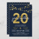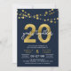 Elegant 20-årsjubileumsinbjudan med strängar av lampor och "20" i falskt guld med "år tillsammans" i vitt mot en mörkblå bakgrund. Kortet har en matchande mönsterbakside. Kolla in matchande föremål som klistermärken och frimärken här https://www.zazzle.com/collections/strings_of_lights_faux_gold_celebration_collection-119311942951401241?rf=238364477188679314