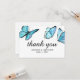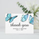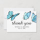 Blå vattenfärg fjärilar Tack. Eleganta kort som på ett vackert sätt kompletterar din moderna bröllopsfest.