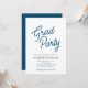 Denna examensfestinbjudan har en enkel design med accentuerad mörkblå skrivstil som lyder "Grad Party". Personlig anpassning med alla detaljer om din examensfest.