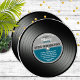 Blå etikett vinylpost Pension Party Inbjudningar