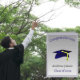 blå examensmössa i silver - Grattis Kort