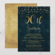 Denna eleganta inbjudan till 50-års bröllopsjubileum är enkel men elegant. Den har en falsk guldkalligrafiobersch och ett slumpmässigt prickmönster högst upp på inbjudan. Bakgrunden är en bild med mörkblå textiler och baksidan av inbjudan har en falsk guldglittertextur. Denna eleganta falska guld kalligrafi-inbjudan till 50-års bröllopsjubileum är redo att anpassas. För varianter av denna design, besök butiken.