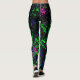 Blå färgplattor för Grönt av Rosa på svart färg Leggings