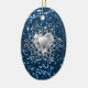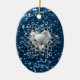 Vackra keramiska oval Chrismas-prydnadsföremål med blå faux Glitter Diamond Heart-snöflingdesign