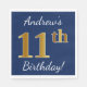 Blå, Faux Guld 11:e födelsedagen + eget namn Pappersservett