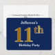 Den här inbjudan har ordningstalet "11:e" med ett faux guld-liknande utseende. Den har också en personlig namn och en blå bakgrund. Den skulle kunna användas för inbjudan till någons elfte födelsedagsfest.