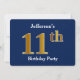 Blå, Faux Guld 11:e Födelsedagsfesten + Anpassat n Inbjudningar