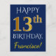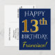 Blå, Faux Guld 13:e födelsedagen + eget namn Vykort