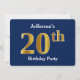 Blå, Faux Guld 20:e Födelsedagsfesten + Anpassat n Inbjudningar