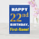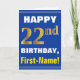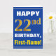 Blå, faux Guld 22:a födelsedagen med Namn-kort Kort