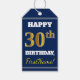 Blå, Faux Guld 30års födelsedag + Anpassat namn Presentetikett